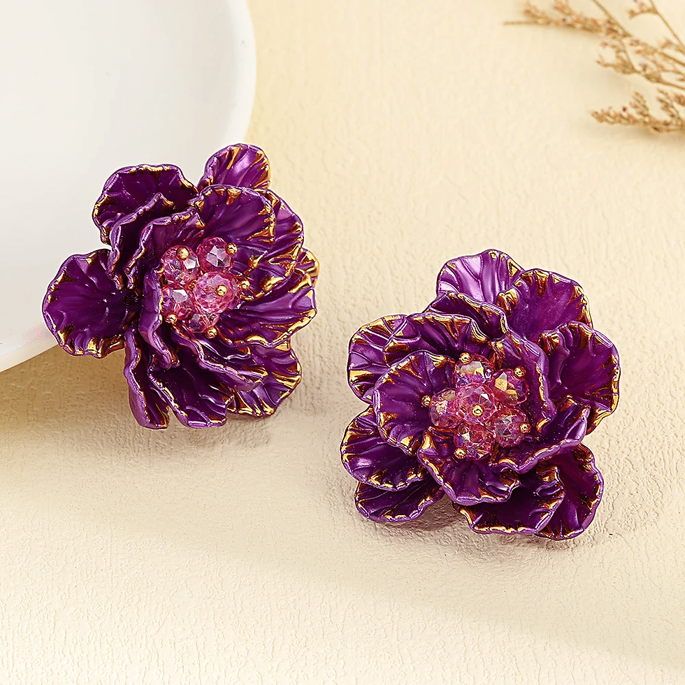 Trendy Resin Petal Flower Statement Stud Earrings