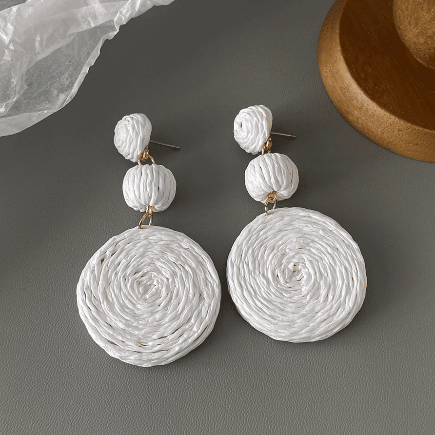 Elevate your accessory collection with these AENSOA handmade rattan knit tassel earrings, featuring a unique geometric design that blends boho-chic charm with modern elegance. Crafted with intricate braided detailing and lightweight materials, these statement drop earrings offer comfortable wear for all-day style. The combination of natural textures and artistic shapes makes them the perfect accent for summer outfits, beach getaways, or elevated resortwear looks. Add a touch of artisanal flair to your ensemble with these versatile and eye-catching accessories.